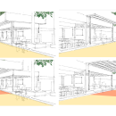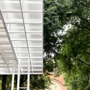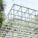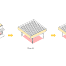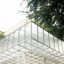 With rails sliding on the curve, the roof would be a movable system that can be hidden when not in use. Also, when it opened, visitors could tell that an event was taking place. With a multi-layered cube structure, using square steel tubing and a light cover which was translucent, the roof became a movable white block with green tamarind leaves in the background during the day, and glowed at night. The final product is now a new spiritual place in a new book street that also has an old soul.
